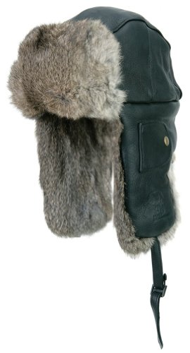 Compare Mad Bomber Leather Bomber Hat with Real Rabbit Fur Black Medium